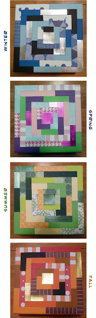 Ever since we went to an art festival a few weeks ago, I've had this idea that I wanted to do some sort of square artwork inspired by the seasons. This weekend, with nothing else to do, I decided to start working on them. I went to Michael's and found a pack of four 6 x 6 canvases for $12.99.